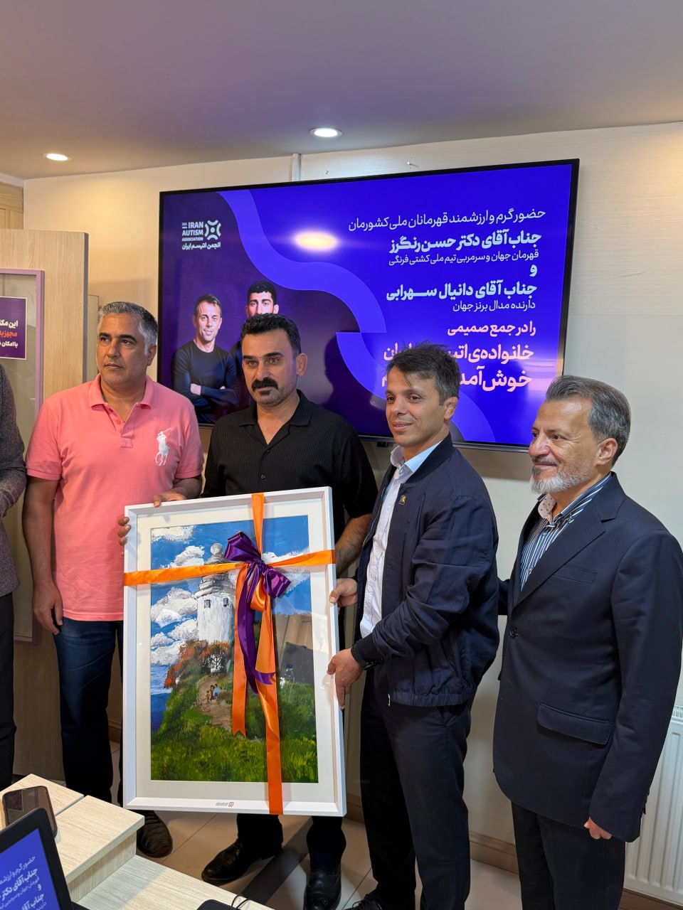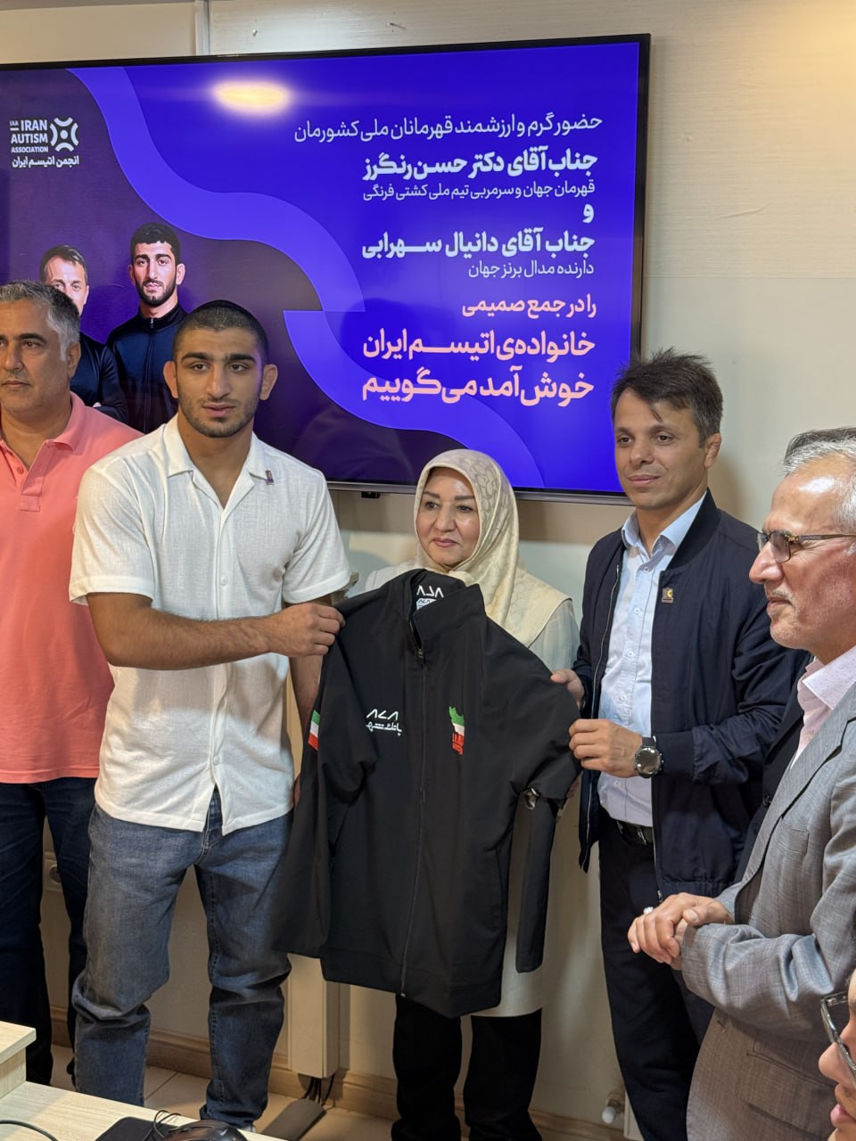امروز انجمن اتیسم ایران شاهد رویدادی ماندگار بود؛ حضور دانیال سهرابی، ملی‌پوش شایسته کشتی فرنگی کشورمان به همراه پدر بزرگوار و برادر عزیزش که در طیف اتیسم قرار دارد، در کنار دکتر حسن رنگرز، مربی با اخلاق تیم ملی کشتی فرنگی.